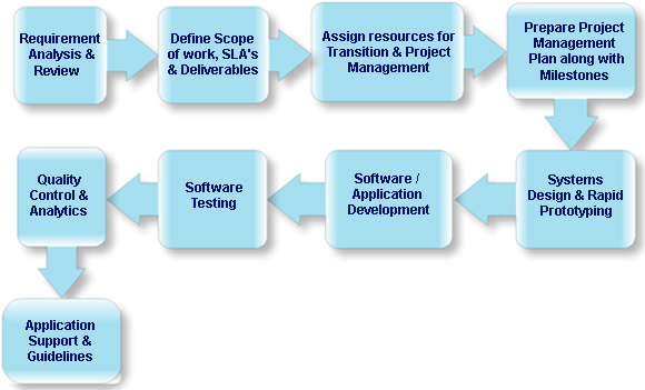 In a bid to translate your IT vision into reality and create powerful solutions, which can help transform your organization and business, Go2India follows a proven methodology and deliver unmatched business value to customers through a combination of process excellence, quality frameworks, and service delivery innovations. Each of the development phases can be defined with metrics and subsequently tracked with business analytics tools to measure operational efficiency.